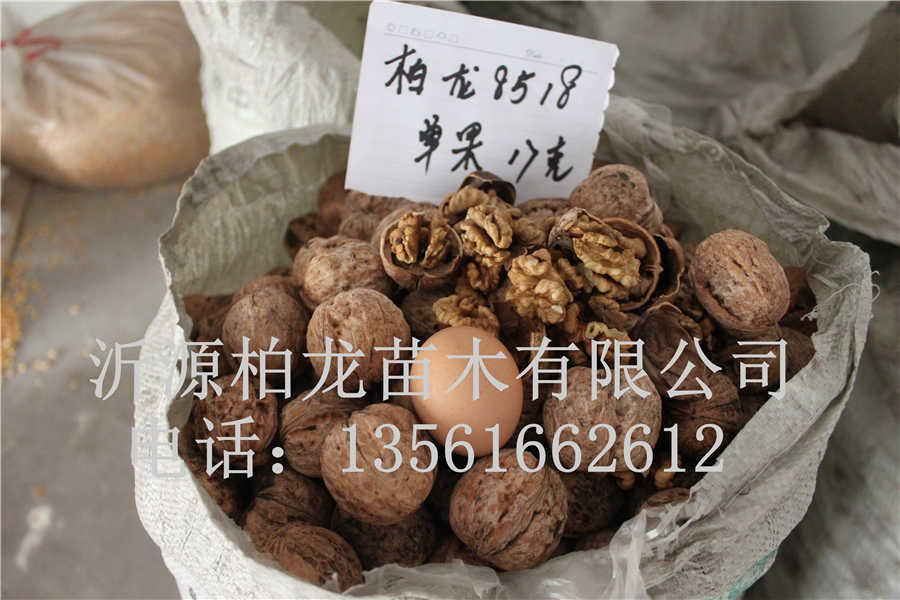 沂源柏龍苗木有限公司(柏龍苗木基地),建在魯山山麓8518核桃選育地,是沂源資質深,規模大,經驗足的專業實體苗木公司。早在70時代就為林業局定點苗木基地。2006年選育8518核桃苗。公司做事以誠信為宗旨,創新為目標,已逐步打造出柏龍系列的品牌苗,先后選育了750萬株8518核桃苗,遠銷21個省市。2012年隨市場需求,增育了文玩核桃苗(麻核桃),同時在縣政府指導下進行培育了“沂源紅”蘋果苗。“沂源紅”蘋果苗一經問世,因其是短枝型,易管理,結果早,產量高,果色艷麗,條紅,口感爽脆,是名副其實的優質品種。
